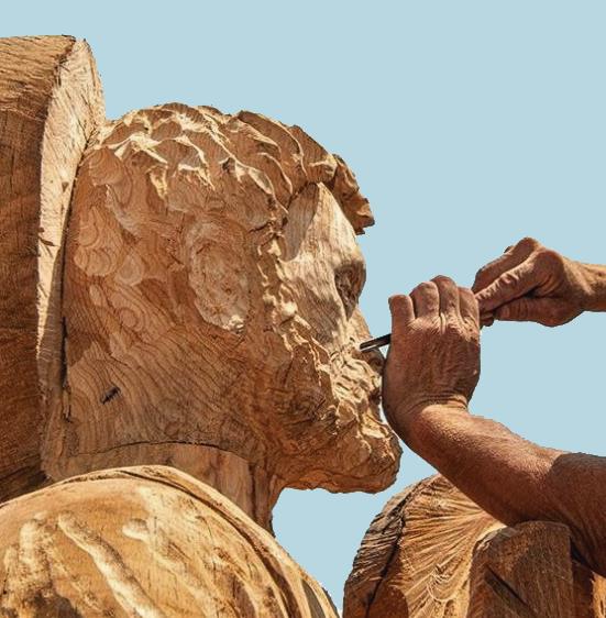 Wood Sculpturer Ken Packie Carving a Statue of St. Joseph for Boston College.